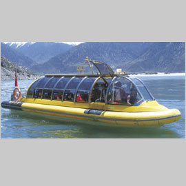 船體材質(zhì)玻璃鋼,具有強度高、重量輕、耐腐蝕、不怕日曬雨淋、色彩艷麗、外型美觀的特點。艙內(nèi)牽引電機,電瓶驅(qū)動,沒有污染,可由游客自行駕駛。